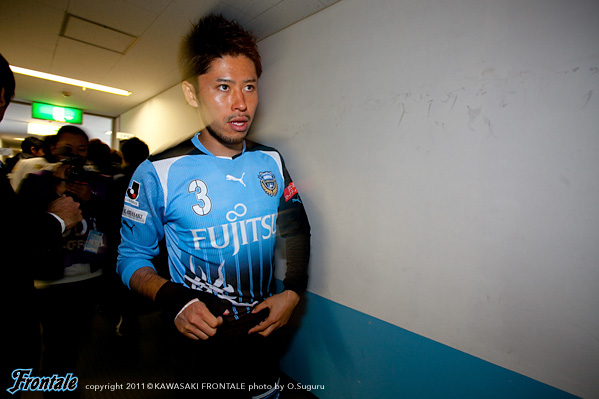 - みんなのおかげで今年はじめて等々力のピッチに立たせてもらった。サポーターの反応がすごかったし、交代するときにタサがお帰りと声をかけてくれ、みんなで迎え入れてくれたのを感じてくるものがあった。シーズンは残り少ないが、ようやくピッチに立てた。まだ天皇杯があるし、勝てば試合は続いていく。等々力のピッチに立てる喜びを感じている。ここでサッカーができるのは最高。自分ひとりではここまでくることはできなかった。ドクターやトレーナー、スタッフのみんな、選手、そしてサポーター。みんなに感謝している。