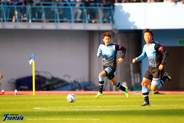 - ジュニが最後の等々力ということで試合前日、寂しい気持ちになった。だから何としてでもゴールがほしかった。チームをここまで大きくしたのはジュニーニョのおかげだと思うし、あれだけの選手はいままで見たことがない。Jリーグでのトップクラスの選手だったと思うし、フロンターレだけじゃなくてリーグ全体の財産だと思う。ジュニーニョには、自分がプロ入り2年目でボランチに入った頃から、とにかく前を向いてタテにパスを入れることを要求されていた。最初はなかなかうまくできなかったが、適当に入れてもジュニーニョが何とかしてくれていた。そうしてタテに入れていくうちにうまくできるようになったし、その部分を評価されたからこそ日本代表にも選んでもらった。ジュニーニョがいなかったら自分は平凡な選手で終わっていたと思う。自分だけじゃなくて、チームのみんながジュニーニョの背中を追いかけ、追い抜くことを考えていた。今日のジュニーニョの1点目は、本当に気持ちいいゴール。ユウの動き出しもよかったし、まったくムダのない気持ちいいゴールだった。ジュニーニョが決めたとき、まるで自分のことのように嬉しかった。試合の流れを決するという意味でも、あのゴールで勝負が決まった。こういう試合で決めることは、そう簡単なことじゃない。そこで決める。脱帽。Jリーグの歴史に残る名選手だと思う。等々力での勝利は久しぶりすぎる。最後こういう試合で勝てて、ジュビロにも天皇杯にもつながると思う。