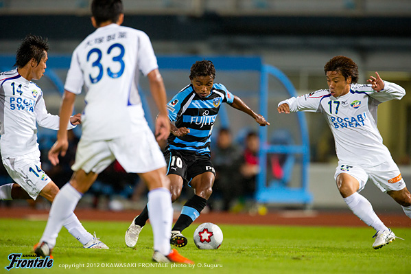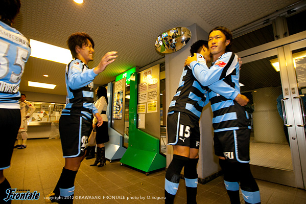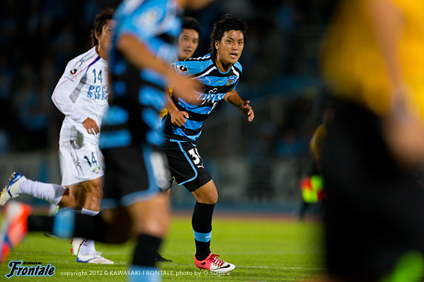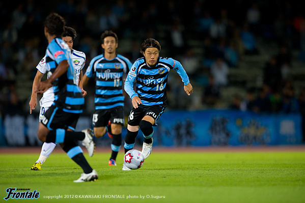 - 今日は3バックでスタートしたが、前の選手はそれほど距離感が変わらないので個人的には違和感はなかった。ただレナトが1人でしかけられるので、ピッチを広く使いながらドリブルでの崩しをもっとやってもよかったかなと思う。ゴールシーンはトラップが少し流れて、そこからどう打とうか考えた。シュートは感覚的なものだが、GKのファーサイドが空いていたところでそこを狙うふりをして、うまくタイミングを外して逆を突くことができた。ただリョータ(大島僚太)からいいスルーパスがあったので、そこで決めたかった。コウヤ(風間宏矢)はボールをつなげるし動ける。攻撃でも守備でも走れるという特徴がある。個人的には最後までやりたかったが、足がつりそうになってしまった。延長戦にもつれこんだが、等々力での試合だし絶対負けられなかった。