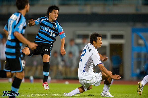 - 本当に気合というか、気持ちで押し込んだ。前半の最初に右足を痛めていたが、厳しいなかでも最後の最後にチャンスを決めることができた。シュート練習をやっていたが、それが結果になってよかった。カテゴリーの違うチームが相手でも、引いて守られると難しい。ただ、結果が出てよかった。ああいうFKは、フロンターレでは初めて。ゴールに近かったので、直接狙った。壁の上を越えて蹴ろうかと思っていた。GKのポジションを見たら開いていたので直接蹴ろうと。120分をプレーしたのも初めて。