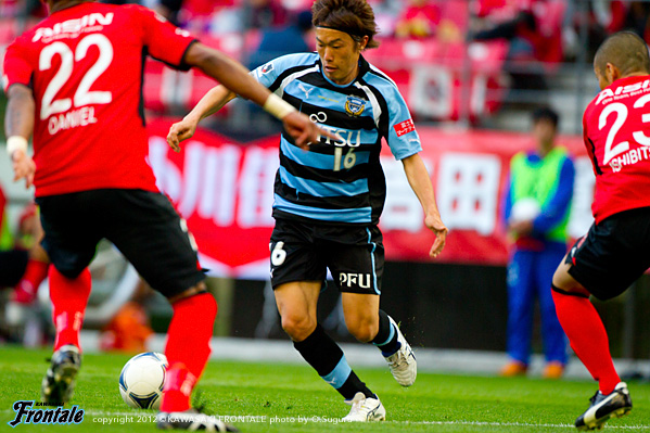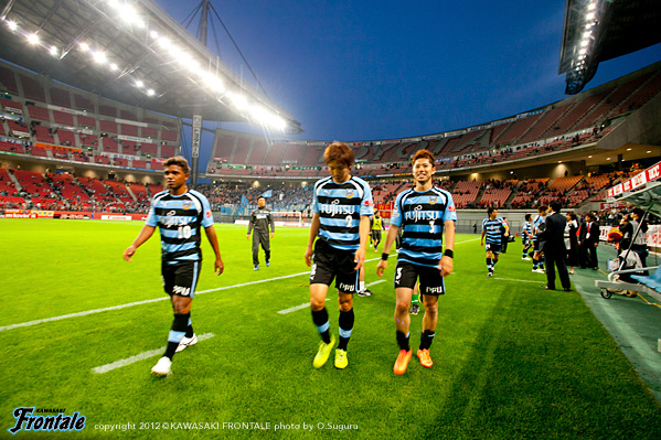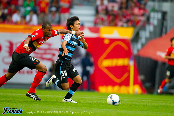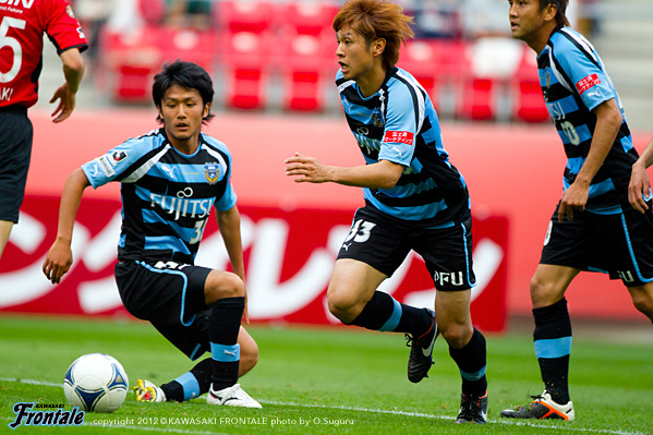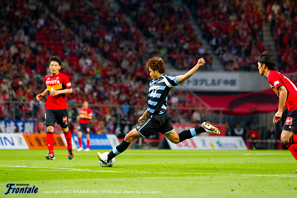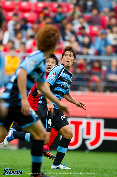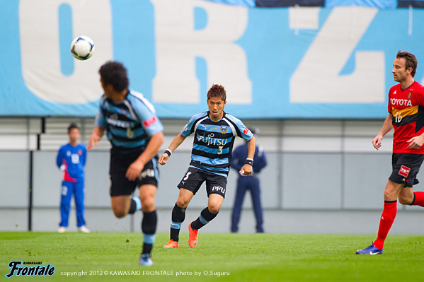 - ゴールを奪った時間帯がよかった。後半はどうしても僕らが後ろに人数をかけていたので受けに回ってしまい、ゴール前の攻防が多くなった。押し込まれた。自分たちがしっかりボールを持っていければ、いいサッカーになる。後半は自分たちが2点リードということで、相手とすればリスクを冒して攻めにかかってくるので、どうしても圧力を受ける形になる。相手のセットプレーの迫力があったが、ボールにチャレンジできていたし、みんなでセカンドボールにいこうとしていたので、新しい形の守り方でも最後のところでは対応することができた。前から行って、出どころを抑えるやりかたもあるが、後ろにかけていたほうがリスクは管理しやすかったということはあると思う。2失点目は相手が上手かった。全体的に課題は残されているが、自分たちのサッカーはまだ始まったばかり。だからこそ結果がついてくることが自信になる。アウェイでも自分たちの時間でサッカーができる時間があったが、これが完成形ではない。今日は4点目がとれていればもっと良かった。リードしている時間帯だったし、最後は上がる気はなかった。今日に関しては、最後は守備のところだけを考えていた。ケンゴさん(中村憲剛)とヤジさん(矢島卓郎)の関係はいい。ケンゴさんの位置がいいんだと思う。いい形で練習してきているし、ヤジさんも動き出せば出てくる。そうすることで、もっと周りも生きてくる。今日はタサ(田坂祐介か)も決めているし、2列目3列目からもっと決められれば。そのためにも質を上げていかないと。セットプレーは、洋平さん(西部洋平)がいるのが大きいと思う。終盤にレナトが入ってきて、新しい形が作れたのもいいと思う。ボールを失わないので。これからもっとよくなっていくと思うので、選手としてもすごく楽しみではある。チームの一員として、機能している実感はある。アウェイで勝って連勝ということで、気持ちよく川崎に帰ることができる。名古屋まで来てくれたたくさんのサポーターの皆さんの声もよく聞こえていたし、今度はまた等々力でこの2戦のような勝ちゲームをできるようにしたい。