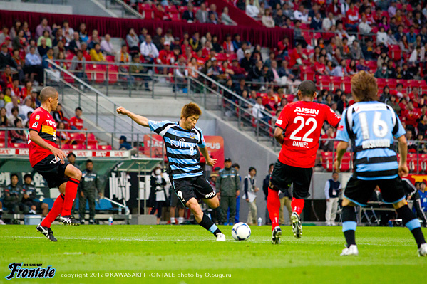 - 勝ててよかった。今日は前半よかったが後半は危なかった。そこで我慢しながらでも追加点を取れれば、もう少し楽な展開になった。1点目はケンゴさん(中村憲剛)がいいボールを出してくれた。2点目はボールをもらうタイミングが合わなかったが、結果的にボールを止めて冷静にシュートを打つことができた。狙い通りではあるが、あのコースしかなかった。いい流れのときはボールを持ててチャンスを作れている。ケンゴさんやリョウタ(大島僚太)がボールを受けたときにチャンスになっているので、2人がもっといい形で受けられるようにボール回しの精度やスピードを上げていきたい。そうすれば、もっと守備の固い相手でも崩せると思う。後半はかなり押し込まれてきつかったが、そのぶんアウェイで勝利した意味は大きい。勝ちきることができてよかった。