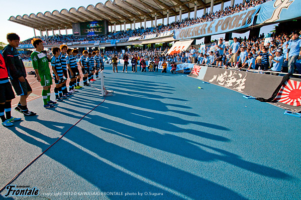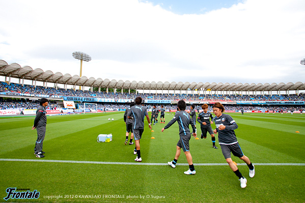 第11節、ホーム柏戦。フロンターレは現在リーグ戦連勝中。結果を出すことでチームの新しい方向性への自信を深めていきたい。雲が多くなってきた等々力陸上競技場。15:03キックオフ。