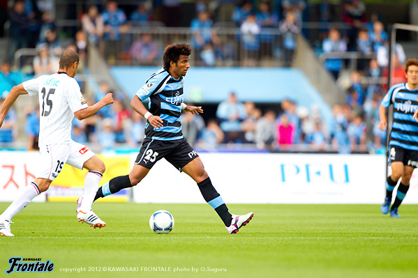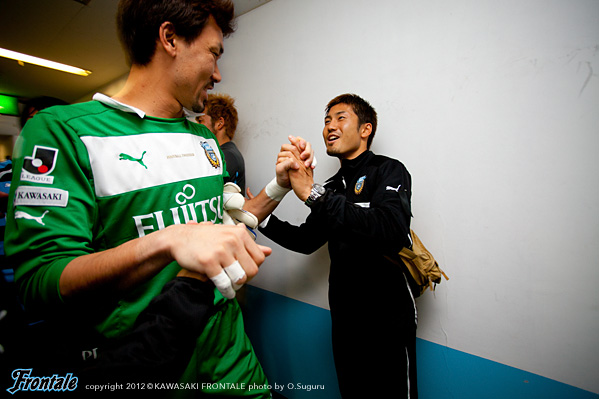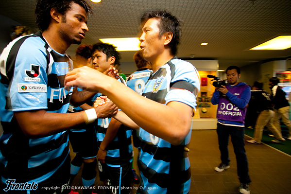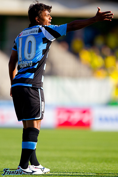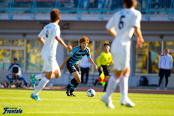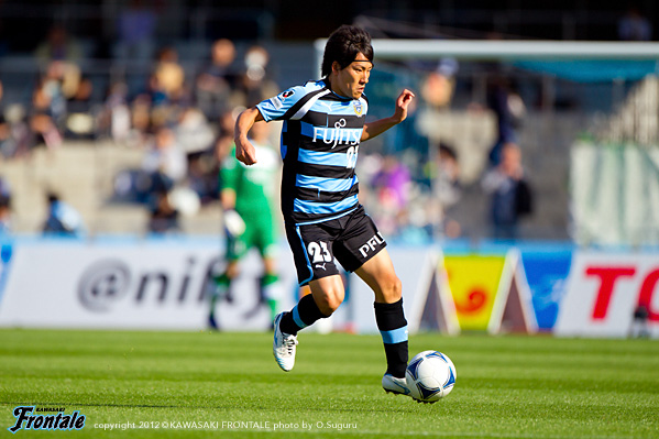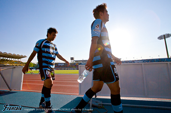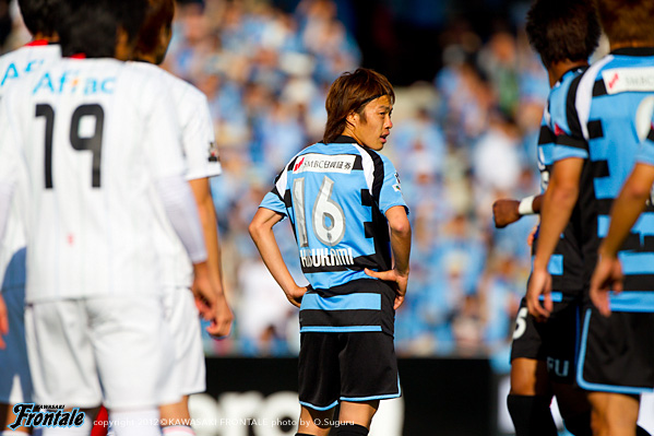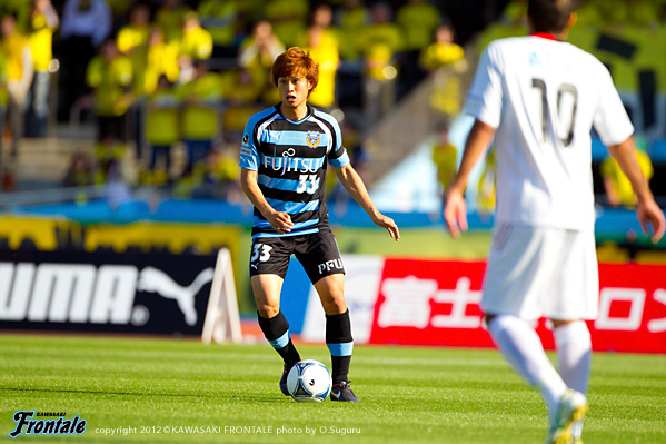 - フロンターレでの初のゲーム。自分としてはそれほど悪くなかったと思うが、もっとやれることもあった。シュートまで運ぶ場面もあったし、そのチャンスで決めることができていれば。ああいう形でゴールを取ろうというのはケンゴ(中村憲剛)と話していた。そこで決められず、残念としか言いようがない。等々力のピッチは練習試合で経験していたが、実際にサポーターが入って声援を送ってくれた。素晴らしい雰囲気を作ってくれたので、何とかしてその期待に応えたいと思っていたが。今回はJリーグ初のゲームということで、まず背後をとられないことを意識していたが、逆に攻撃に出る機会が少なかった。今回の経験を次に生かしたいし、またチャンスがくれば背後をとられないよう注意しつつ、積極的に攻撃に出ていくこともやっていきたい。