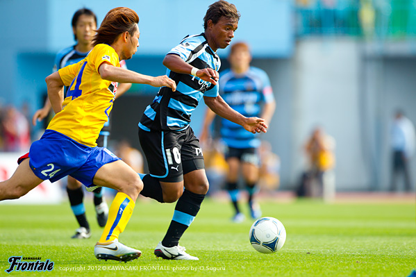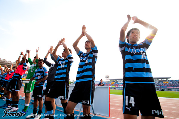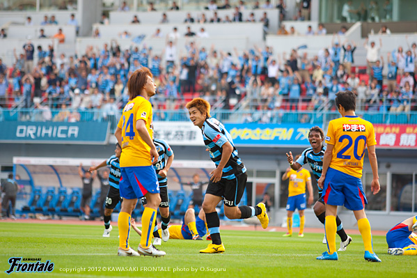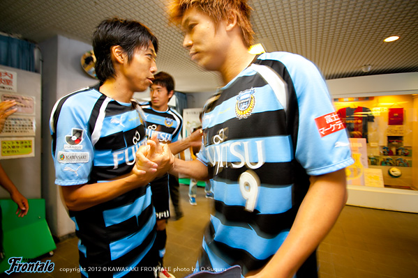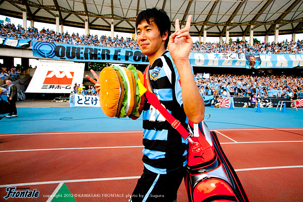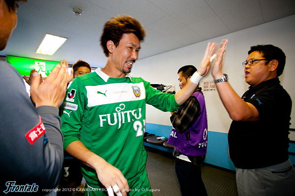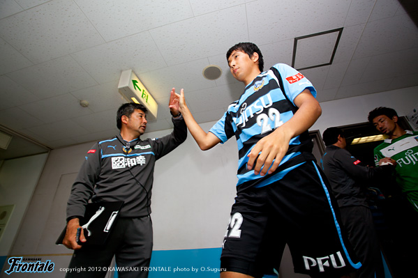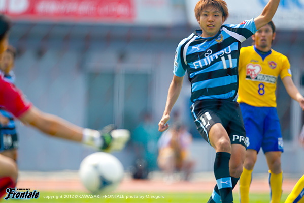 - 点を取りたかった。守備は走れたし、とりあえずCBのところにプレスをかけた方が蹴ってくれるかなと。そっちの方が楽だったので。前半はそれなりにできていたと思う。その時間でもっと作れれば、チャンスは作れていたと思う。ポゼッションの時間が長くなってきているし、自分も含めてうまくなっているのは感じている。タイトルを目指してやっていて、そこは意識している。こういうゲームを続けないと、タイトルはつかめないと思う。2点目はケンゴさん(中村憲剛)が持った時に、ユウスケくん(田中裕介)が走ったので相手がつられていた。そこに走った。相手の股を抜いてクロスを入れられた。こういう勝ち方ができて、気持よくファン感に臨める。自分はタンブラーを作るコーナー担当。