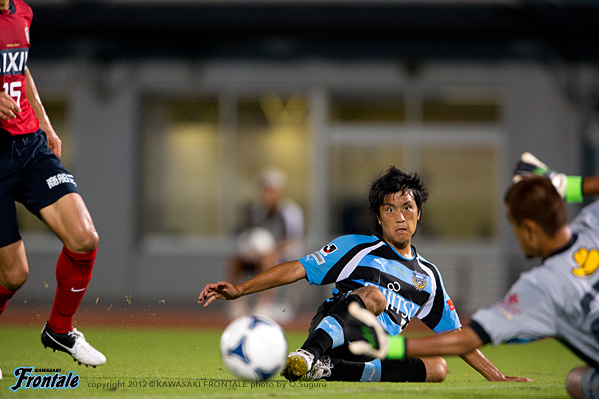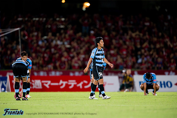 後半立ち上がり47分、鹿島の攻撃。右サイド裏のスペースを突かれ、興梠の折り返しをレナトに合わせられるが守備陣が対応。48分、フロンターレの攻撃。井川が左サイドに展開。山越がクロスを入れるが風間矢には合わず。50分、スローインの流れから中村が右サイドからクロスを入れるがゴール前にはタイミングが合わず。51分、鹿島の攻撃。ロングボールからボールをつながれドゥトラにゴール前へ入り込まれるが、GK杉山が飛び出しキャッチ。52分、自陣でボールを奪われ右サイド西の折り返しを興梠にダイレクトで合わせられるが、シュートはゴール上に外れる。危ない場面だった。53分、自陣でボールを奪われ大迫にボールが渡るが田中裕が戻りカバー。危ない場面が続く。54分、フロンターレの攻撃。中央からパスをつないで中村がスルーパス。右サイドの田中裕が折り返しを入れるがDFにクリアされる。57分、鹿島の攻撃。ボールをつながれ最後は大迫に左サイドからシュートを打たれるがゴール右に外れる。58分、セカンドボールを拾われ押し込まれるが守備陣がしのぐ。59分、フロンターレの攻撃。中村を起点にボールをつなぎ、山瀬が右サイドからシュートを放つがDFにブロックされる。60分、鹿島の攻撃。ロングボールに興梠が走り込むが、GK杉山が飛び出しどうにかクリア。61分、フロンターレの攻撃。自陣からボールをつないで速攻へ。一気にゴール前に迫るがDFにクリアされる。62分、登里に代わり楠神がピッチへ。64分、フロンターレの攻撃。自陣からボールをつないで左サイドに展開。楠神のスルーパスに風間矢が合わせるが、シュートは惜しくもGKの好セーブに阻まれる。65分、鹿島の攻撃。自陣でボールを奪われレナトにミドルシュートを打たれるが、GK杉山がどうにかセーブ。67分、ロングボールを受けたジュニーニョに左足でミドルシュートを打たれるが、GK杉山がキャッチ。72分、左サイドからのフリーキック。レナトのボールはGK杉山がパンチング。セカンドボールを拾われ、ゴール前に迫られるがどうにかしのぐ。73分、スローインの流れからドゥトラに右サイドから入り込まれてシュートを打たれるがゴール右に外れる。危ない場面だった。