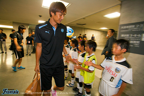 - 前半はリズムが悪く、相手も激しくきていたので厳しい流れだったが、そこをゼロで抑えられたことが大きい。それが後半立ち上がりの得点につながった。いくら相手に押されていても、しっかりしのげれば必ずチャンスがくる。いままでは攻撃の部分にフォーカスしがちだったが、今日のように不利な流れになっても我慢することができれば、チームとしてのスキルをレベルアップさせることができると思う。今日は多摩川クラシコということもあったし、フロンターレにくる前から味の素スタジアムはアウェイチームにとって威圧感のあるスタジアムだった。そんななかでたくさんのサポーターが来てくれて、そのプレッシャーに立ち向かう勇気を与えてくれた。それほどアウェイの雰囲気を感じることなくやれたのはサポーターのおかげ。その上にサポーターに誕生日を祝ってもらった。もし負けていたらサポーターの前で挨拶することもなかっただろうし、サポーターに用意してもらったケーキが無駄にならなくてよかった。欲をいえばゴールを取りたかったが。今日の試合をいいきっかけにしなければいけないし、次はホームでしっかり勝点3を取りたい。