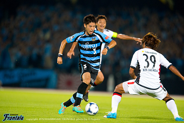 22分、ボールをつないで中村の浮かし球を風間矢が頭で落とし、大島がダイレクトでシュートを狙うが大きく外れる。23分、札幌の攻撃。河合のロングボールはジェシが対応。24分、ワイドな展開から右サイドの古田に切れ込まれてミドルシュートを打たれるが、ここは守備陣がブロック。25分、左ショートコーナーからハモンにシュート性のボールを入れられるがGK杉山がセーブ。さらにセカンドボールを拾われ押し込まれるがGK杉山を中心に落ち着いてピンチをしのぐ。26分、フロンターレの攻撃。札幌の攻勢をしのいでカウンターへ。中村のドリブルからゴールに迫るがフィニッシュにはつながらず。29分、自陣でボールを奪って反撃に出るがラストパスにはつながらず。32分、田中裕が長い距離をドリブル突破。楠神に縦パスを入れるが惜しくもフィニッシュに持ち込めず。33分、左サイドで細かくパスをつないで押しこむが惜しくもラストパスに持ち込めず。36分、サイドチェンジから田中裕がアーリークロスを入れるが、ゴール前の風間矢にはタイミングが合わず。37分、自陣からパスをつないで中村がスルーパス。抜け出した楠神がシュートを放つが惜しくもGKに止められる。38分、セットプレーのセカンドボールを拾って右サイドの山瀬が粘って折り返し。ゴール前に風間矢が飛び込むがうまくミートせず。39分、楠神が右サイドからドリブル突破。DFをかわしてライン際から折り返すがゴール前にはタイミングが合わず。40分、札幌の攻撃。ロングボールから右サイドの古田に折り返されるが守備陣が対応。44分、フロンターレの攻撃。中村の右コーナーキックに田中裕が飛び込むが惜しくもタイミングが合わず。フロンターレがボールを保持して試合を進めるものの、なかなか決定機を作れず。0-0で前半を折り返した。