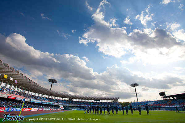 第29節、ホームG大阪戦。前回の対戦で逆転負けを喫しているG大阪を等々力で迎え撃つ。J1残留に向けて必死になって勝負を挑んでくる相手を打ち負かすことができるか。西日が差す等々力陸上競技場。15:03キックオフ。