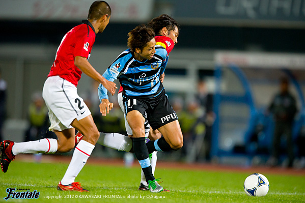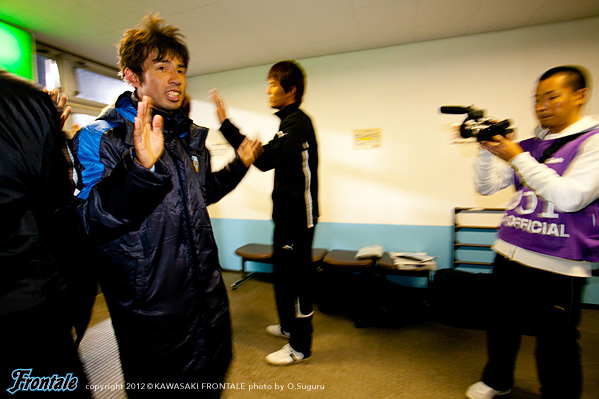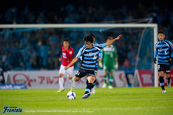 - 1つは例えば今日は登里を見てもらうと、彼は自分の判断で相手の最終ラインにも入って行きましたし攻撃のときに。それから、一番危ないところを今日は何回も防いでいましたね。だからそういうところ、やり方でやると穴はできるんですが、一人ひとりの判断で自分がどれくらい戦えるか。これはレナトも同じですね。それから裕介も同じですし、そのへんはひとりひとりがだいぶ自分の中でシステムにハマるのではなく自分がそのポジションからどう見るのか。例えば一番逆サイド、今日のノボリの場合だと、一番遠いサイドはチームの目になれる。攻撃でも守備でもそうですが、そこのところでそのポジションを比較的取ってくれたんじゃないかと思います。それから逆にコンビネーションのところでも、憲剛(中村憲剛)が中央、例えば宏希(風間宏希)にしてもイナ(稲本潤一)、あるいは中盤の他の選手にしてもグループで言うとどちらかと言うとボールサイドではない選手が目になっている。そういう意味では中村憲剛はさすが、よくそのへんをコントロールしてくれたと思います。