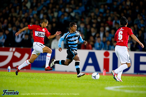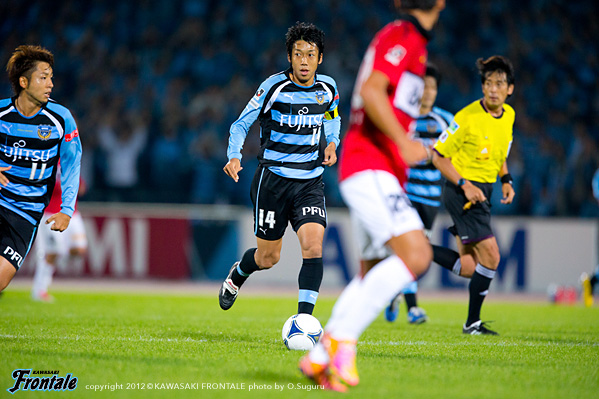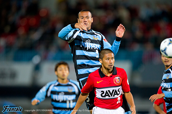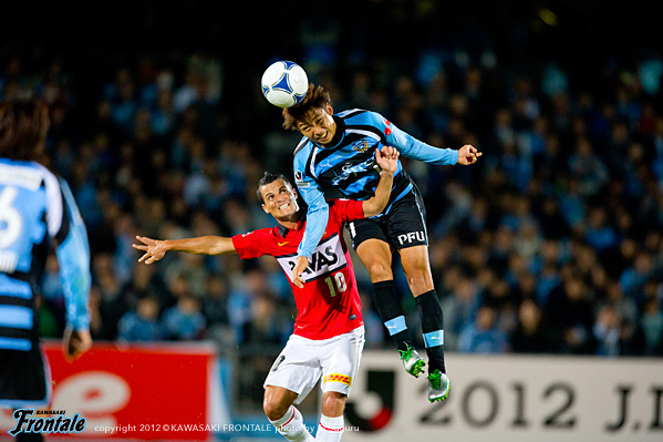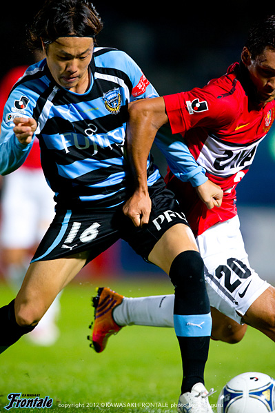 後半スタートから楠神に代えて山瀬がピッチへ。46分、浦和の攻撃。左サイドの柏木のアーリークロスから原口に飛び込まれるがボールには触れず。47分、フロンターレの攻撃。中盤左サイドからのフリーキックの場面。中村がボールを入れるがGKキャッチ。48分、實藤のオーバーラップから田中裕が右サイドから折り返しを狙うがDFにカットされる。50分、浦和の攻撃。左コーナーキックの場面。マルシオのマイナスのボールを山田が合わせられるがゴール上に外れる。51分、パスワークからスルーパスを狙われるが守備陣が対応。52分、フロンターレの攻撃。小林が左サイドに展開。レナトがドリブル突破から折り返しを入れニアサイドに山瀬が飛び込むが、合わせたボールは惜しくもゴール左に外れる。53分、浦和の攻撃。左サイドの梅崎にドリブル突破を許しクロスを入れられるが、このボールはGK西部がパンチング。53分、パスワークから中央突破を狙われるが、柏木のトラップは流れてGK西部がキャッチ。危ない場面だった。54分、原口にドリブル突破を狙われるが守備陣で挟み込み対応。57分、フロンターレの攻撃。ボールをつないで小林からパスを受けた山瀬がフェイントからシュートを放つがDFにブロックされる。迎えた58分、ゴール前にボールを入れられ混戦の中からルーズボールに反応した槙野にシュートを決められ1点差とされる。(3-2) 59分、浦和の攻撃。ボールを奪い返され攻勢をかけられるが守備陣がしのぐ。63分、中盤やや左からのフリーキックの場面。マルシオのボールを阿部に折り返されるが守備陣がしのぐ。65分、風間希に代えて稲本がピッチへ。66分、ペナルティエリア前からのフリーキックの場面。槙野のシュートはGK西部の好セーブでしのぐ。67分、左コーナーキックのクリアボールを再びマルシオに入れられるが守備陣がクリア。