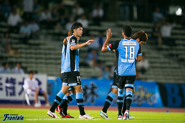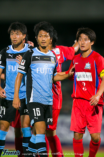 65分、フロンターレの攻撃。ゴール前に圧力をかけて右サイド棗が絶妙のクロスを入れるが、風間矢のシュートは惜しくもうまくミートせず。迎えた67分、自陣から中澤が前線にボールを送り、抜け出したアランがそのままドリブル。左サイド角度のないところからシュートを決めて3点目を挙げる。(3-1) 70分、フロンターレの攻撃。中盤から山本が前線にボールを入れるが風間矢には通らず。73分、小宮山が自陣からロングボールを入れ、アランがDFを1人かわすが止められる。75分、高知大の攻撃。右へのサイドチェンジから折り返しを入れられるが、守備陣が対応。78分、風間矢に代えて登里がピッチへ。79分、フロンターレの攻撃。中央で細かくパスをつなぎ森谷がラストパスを狙うが、惜しくもアランには合わず。80分、山本が中央からドリブル突破をしかけるが止められる。81分、高知大の攻撃。ロングボール一発で裏を取られ塚本にフリーで抜け出され、飛び出したGK杉山の頭上を抜かれるがループシュートはゴール上に外れる。危ない場面だった。84分、棗に代えて大久保がピッチへ。87分、高知大の攻撃。自陣でボールを奪われるが守備陣が落ち着いて対応。アディショナルタイム3分。90+1分、高知大の攻撃。パスをつながれ押し込まれ、最後は原田にシュートを打たれるが福森がブロック。90+2分、左コーナーキックの場面。原田のボールはアランがクリア。90+2分、フロンターレの攻撃。山本のカットからカウンターへ。森谷、大久保とつなぎラストパスを登里が受けるが、右サイドからシュートは惜しくもGKにセーブされる。試合は3-1でタイムアップ。