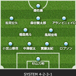 | 杉山 力裕 | 1 | 0 | 0 | 0 | GK | 0 | 0 | 0 | 1 | 那谷 侑平 |