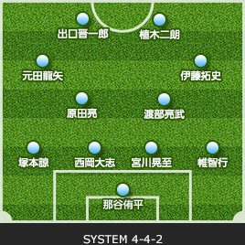 | 17 棗 佑喜 | → | 13 大久保 嘉人 | 84 | 72 | 19 曽根 友祐 | ← | 8 渡部 亮武 |