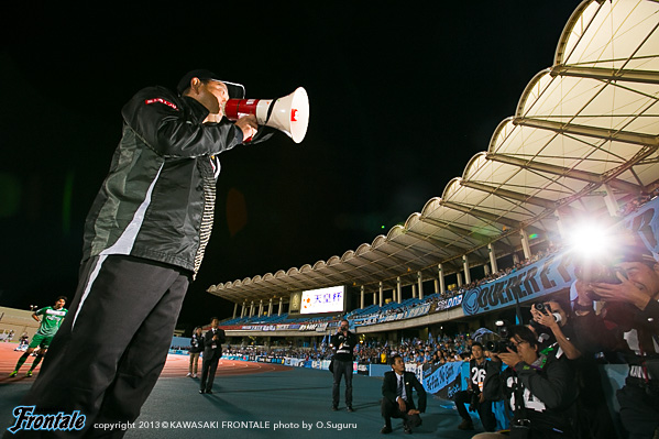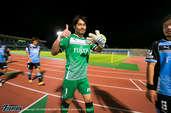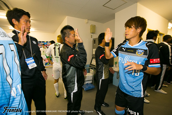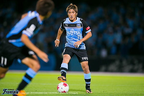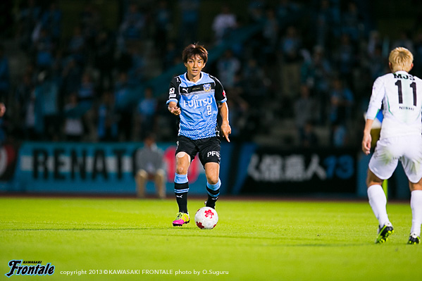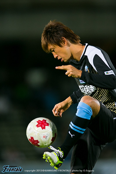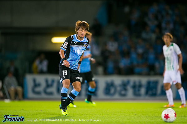 - ゴールの形は練習のときから、ユウ(小林悠)やレナトにGKとディフェンスラインの間に入れてくれと話していた。狙いどおりの形。あと、ボールを上手く取れた。あの位置でボールをとれればすぐにゴールの前だし、特に立ち上がりは逆に相手がバタバタしていたので、ああいう前からのプレスがきいていた。でも他にもチャンスが何本かあったし、追加点を決めれば勝負が決まるという場面があった。そこはもっと練習して決められるようにしたい。前半は追い風だったし、長いボールを相手に蹴られても、あまり怖くなかったが、後半は蹴られて押し込まれたのと、自分たちが疲れたのとで、相手も多少というか、繋ぎだして間を使われたりした。ああいう時は多少引いいてでも守れればと思う。後半の立ち上がりに何度かあったピンチを防げたのが良かった。個人的にはひさびさに等々力で先発をして、天皇杯だがサポーターがいい雰囲気を作ってくれた。その中でサッカーができたのが嬉しいし、等々力でみんなと喜びあえてよかった。やはり等々力でプレーするのは楽しい。次のリーグ戦もホームなので、また結果を出してみんなで盛り上がっていきたい。今日も応援ありがとうございました。