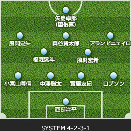 | 杉山 力裕 | 1 | 0 | 0 | 0 | GK | 0 | 0 | 0 | 1 | 佐藤 優也 |