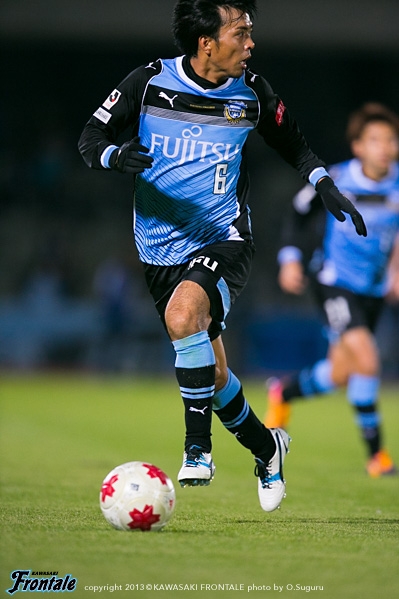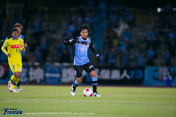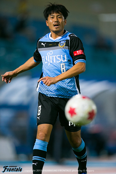 - 前半は、いつものように長くボールを持てる展開にはならなかった。特にボランチがボールを受けてさばくという回数が少なかった気がする。自分のところでも、相手はサイドに人数をかけて守って来るので、そこでもう一人、間に入ってサポートしてきて欲しかった。左で攻撃を作っているときは、逆に僕とコミさん(小宮山尊信)が空いてくる。そこでもっとうまくやれればよかった。後半、ケンゴさん(中村憲剛)が入ってからは、中盤での縦関係がもう一人出来るようになった。それでボールが回ったのだと思う。PKは狙い過ぎたわけではなく、普通に蹴ったつもりだったがポストに当たってしまった。これを引きずらないように頑張りたい。