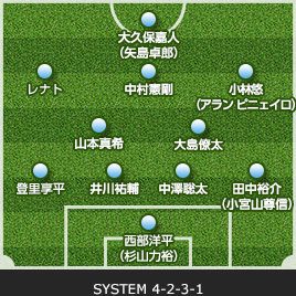 | 西部 洋平 | 21 | 0 | 0 | 0 | GK | 0 | 0 | 0 | 21 | 常澤 聡 |