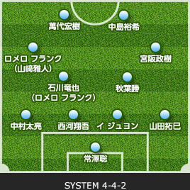 | GK/杉山 力裕 | 1 | 0 | SUB | 0 | 1 | GK/清水 健太 | ||||