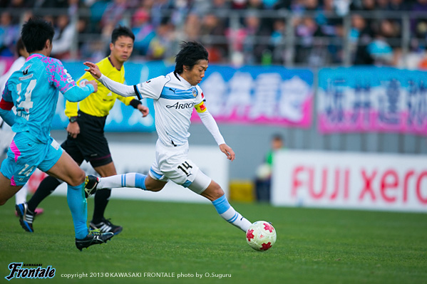 - 全部蹴っちゃっていた。相手の激しさも、ピッチの難しさもあった。完全にオレとかケンゴさん(中村憲剛)とか狙われているから、その他の選手が、ケンタロウ(森谷賢太郎)とかアラン(アラン ピニェイロ)とかがキープしないとやろうとしているサッカーができない。そこでもっとキープしてくれて、タメを作って欲しかった。オレらに入ってもボランチ2枚とかCBが2人来る。そうなると難しい。あとはセカンドボールを狙ってきてるから、どこからでもGKが蹴っていた。レナトとリョウタ(大島僚太)の不在は関係ない。後半の終盤良くなったのは、相手が前に行く気がなくて、5バックになっていたから。負けたのは残念だが、また来年頑張りたい。