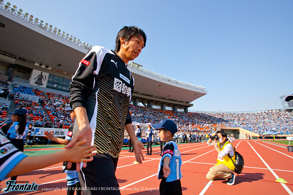 - 前回の試合で100試合出場したことはわかっていたが、セレモニーをやってもらえるとは知らなくてびっくりした。試合直前にロッカールームで言われて、どうやって喜べばいいのか考えてしまった。妻と子どもが来ていることもまったく知らなくて、聞いてないぞという感じ。本当に驚いたが嬉しかった。サポーターの皆さんにも声をかけてもらったし、これからフロンターレで試合に出続けてチームの勝利に貢献したいと思う。まずはトレーニングからしっかりアピールして、自分の特徴をどんどん出していきたい。