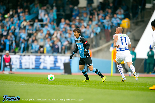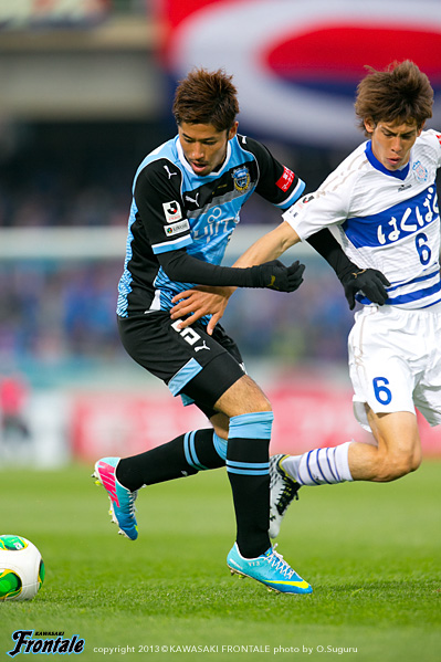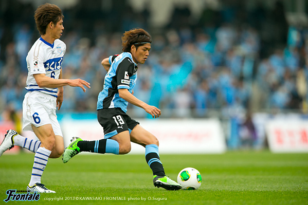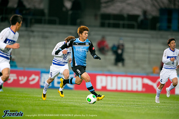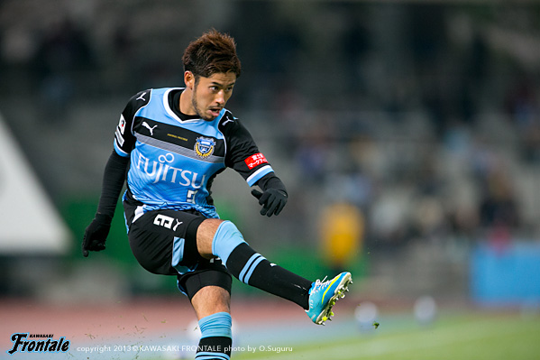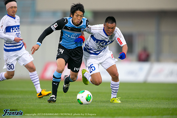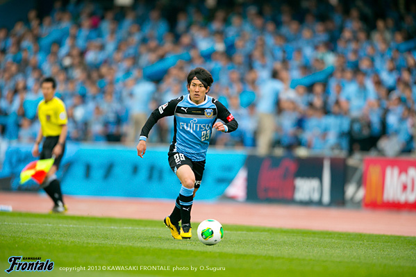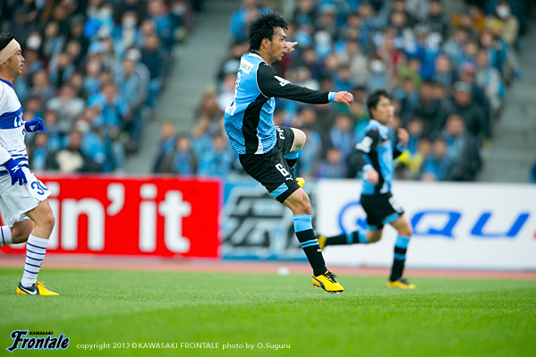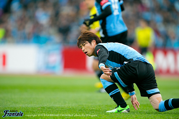 - 最初ベンチから見ていて、相手のファーストチャンスであっさり入ってしまったなと。開幕からずっと続いているが、相手のいいシュートが入ってしまう。この試合も追いかける展開になった。先に取られていなかったら展開も違っていたと思う。ただ後半のことを考えるともっと点が取れたと思うし、ひっくり返せた試合だった。自分が入るときは右サイドだったので、まず守備のポジションに入ってそこから前に出て行く指示だった。でも左サイドからのクロスのときはパト(パトリック)、ヨシトさん(大久保嘉人)、そして自分がゴール前に入っていくことを意識していた。決まったゴールもそうだし、その前のポストに当たったシュートもそうだった。PKはたまに外れることもある。自分としても3回ぐらいチャンスがあったので、もう1点は取りたかった。ひさびさの等々力での公式戦だが、やっぱりやりやすかった。メインスタンドは仮設だが、けっこう立派。すぐにナビスコカップで等々力での試合がある。スタメンで出られるように、まだ勝ってないので切り替えて次も頑張りたい。