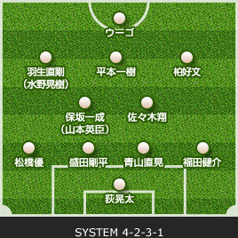 | GK/杉山 力裕 | 1 | 0 | SUB | 0 | 1 | GK/荻 晃太 | ||||