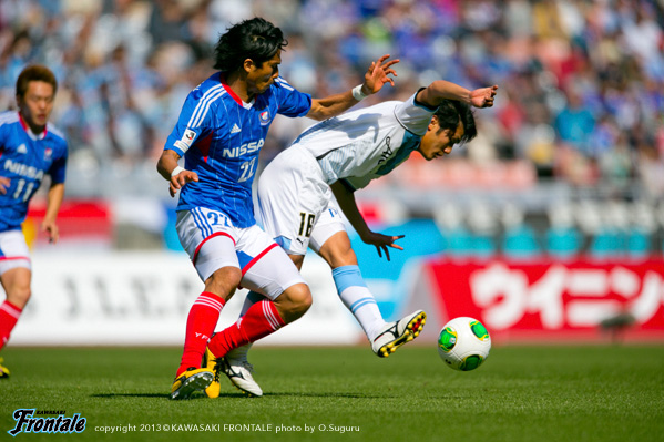 後半に入りようやくフロンターレにもチャンスが生まれはじめ、田中裕がコーナーキックを合わせて同点に。しかしその後の攻勢をしのがれ、終盤セットプレーから痛恨の失点。アウェイで黒星を喫した。