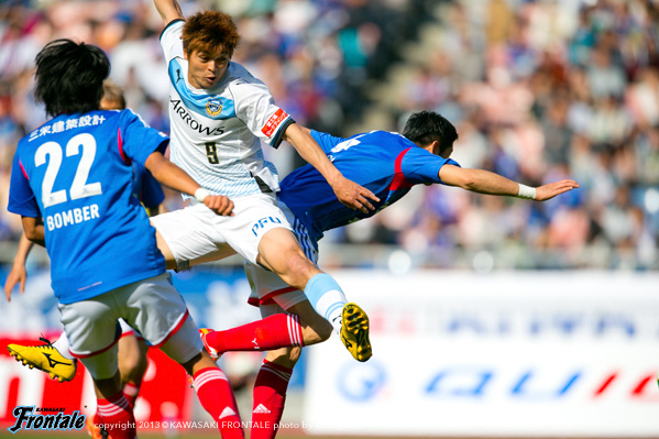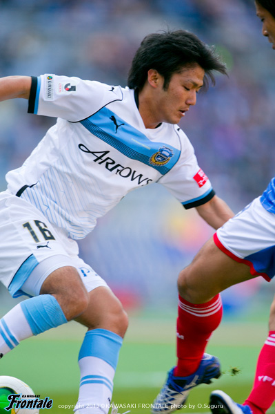 - ゴールは、ニアはケアされていると思ったのでファーに走ってみた。レナトのボールもよかったので狙っていけた。同点ゴールの後、もう1点取るチャンスを狙っていたが、良い流れのときに相手にたたみかけられたらよかった。前半は自分たちが攻撃に出るスタートのところでのミス。そこで相手に取られていたのでそうなると中々上がれない。あとは取る場所が低かったということもあるかもしれない。縦パスを狙われていたのは、そこしかパスコースがない状況を作られていた。そこしかない状況だと狙いやすいだろうし、そういうところも横にサポートがいて後ろはもちろんいるが、そこでもっと前に選択肢を作れるようにしたかった。あと、試合中に何度か横にサポートにいるということは話していたが、なかなか取った後にそこまで視野を確保するのが難しかったのはあったかもしれない。途中から憲剛さん(中村憲剛)がボランチに落ちて4−4−2になって、そこで収まるようになった。緩急も付けられた。前半のところからああいう感じで回せていたら違っていた。今日は最悪のところ引き分けでもOKだったとも思うが、こうなる原因はあるし、あのセットプレーもミスが続いてのCKだったので、ああいう時間帯はリスク無くやる必要もあった。試合の中でいいプレーもあったし悪いことばかりとは思っていない。いい流れの時にひっくりかえせる力をつけていきたい。チームも若いしまだ成長できると思う。