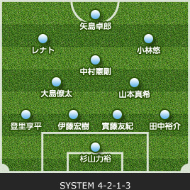 | 杉山 力裕 | 1 | 0 | 0 | 0 | GK | 0 | 0 | 0 | 1 | 榎本 哲也 |