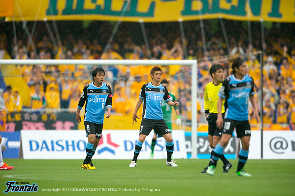 後半立ち上がりに1点を返されたものの、直後に大久保のゴールで4点目。その後、セットプレーから2点目を奪われ、さらに反撃を受け続けたものの耐えしのぎ、ようやくリーグ戦初勝利を挙げた。