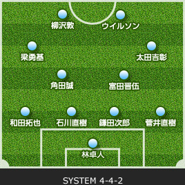 | GK/杉山 力裕 | 1 | 0 | SUB | 0 | 1 | GK/桜井 繁 | ||||