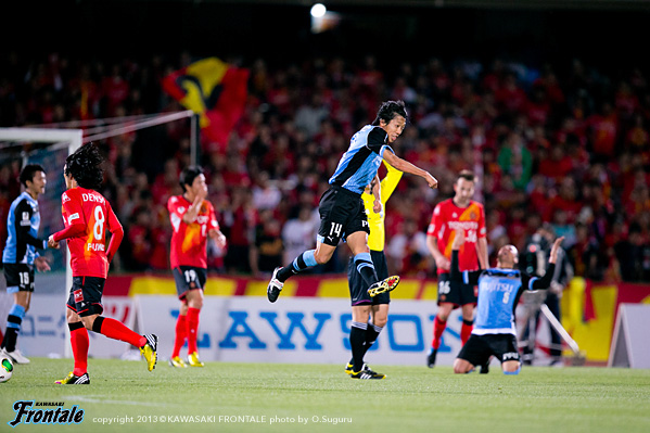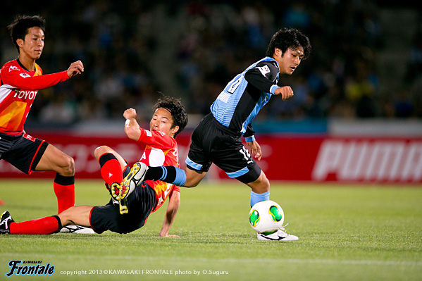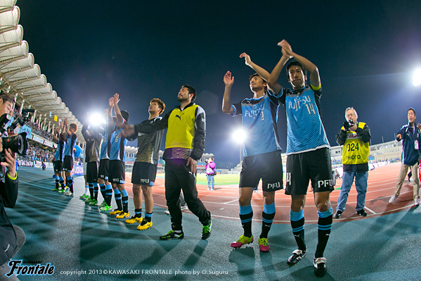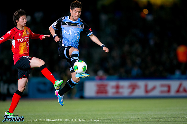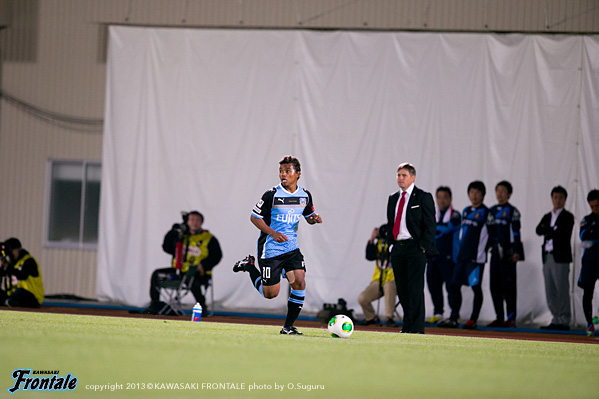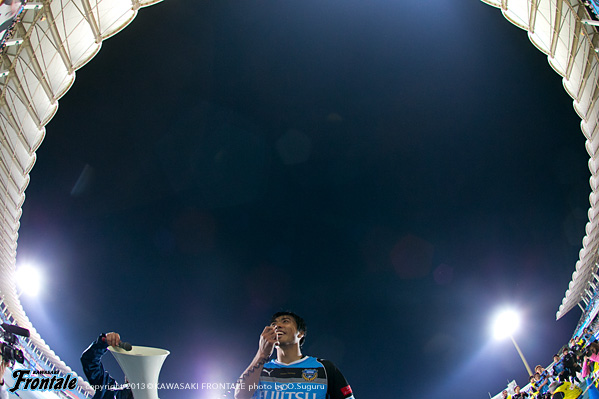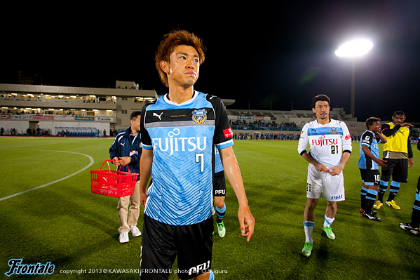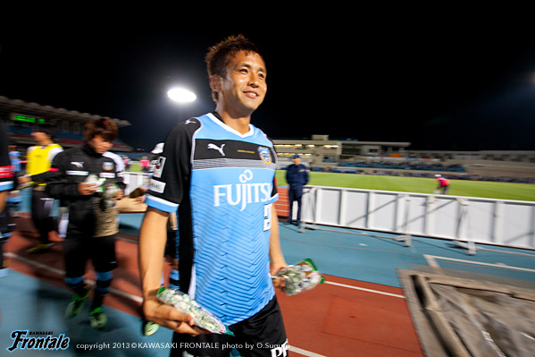 - おかげさまでアシストができた。残り時間は少なかったので、もちろんあのゴール前にもチャンスはあったが、短い時間でアシストできたのは嬉しいし、ホームでこうしてよいゲームをして結果を出せたのは嬉しい。自分が何をしたかというよりもチームが結果を出せたのがよかった。時間が短かったので、自分ができることは限られていた。ボールを持ったら、できるだけ積極的に仕掛けようと思っていた。その結果、相手をうまく引き出せて、中を見たらフリーでいた。それをうまく決めてくれたと思う。中にはケンゴ(中村憲剛)が入っていて、ケンゴが呼んでいて、ケンゴを見てその後にマサキ(山本真希)が入ってきてて、呼ばれたので、そこを使った。嘉人(大久保嘉人)のいいカウンターもあったしチャンスはあった。ホームゲームだった、うちは前の選手、中盤の選手、後ろの選手が最後まで戦ったのがこの結果になったと思う。足の状態はよくなっている。またしっかりトレーニングを積みながら更にコンディションを上げていきたいと思う。