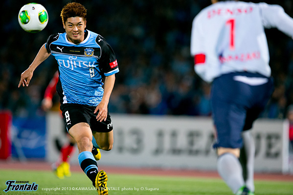 - 今日はすごくスペースがあった。ボランチのところまで下がって守備をして、そこでボールを奪ってカウンターもできていたけど、FWとしては久々にきつかった。でもそうすれば、チームがコンパクトになるし、それぐらいやらないと試合には勝てない。名古屋の守備は前に強いので、そこでぶつかっていくのではなく、相手を間延びさせることとスピードで勝負することを考えていた。最初の時間帯は攻撃のときのサポートが少ない気がしていたが、リズムを掴んでからは憲剛(中村憲剛)や僚太(大島僚太)、悠(小林悠)も自分を追い越す動きもしてくれた。そうなることで自分もヤジ(矢島卓郎)もやりやすくなった。