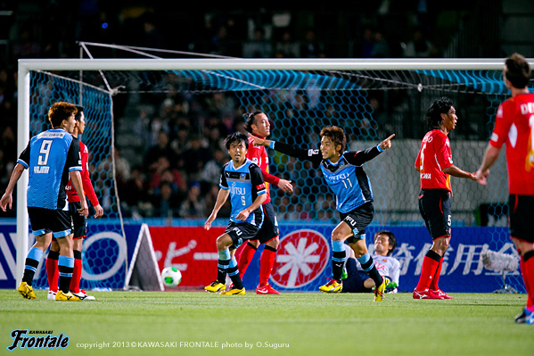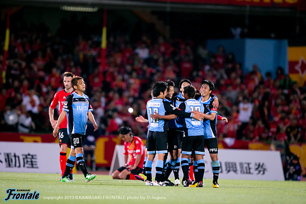 後半はセカンドボールを拾われ名古屋に押し込まれる場面が続き一度は追いつかれたものの、山本のフロンターレ加入後初ゴールで勝ち越し。苦しみながらも勝点3を手にした。
