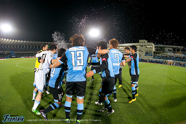 - 前半、決定機でチャンスで決められなかったが、自分の中ではいい感触でプレーすることができていた。前半最後に決めることができて、チームとしていい時間帯に先制点が取れたと思う。ユウスケさん(田中裕介)からちょうどいいボールが入ってきて、このまますらせば入るかなと思って、イメージ通りに流すことができた。相手に高さ、強さの迫力のある選手がいる中で、みんなが体を張って、たくさん走って、チーム一丸となって戦えていた。それで勝てたことに本当に意味があると思う。ボール際でもしっかり戦えていたし、みんな走っているのに自分だけ走らないわけにはいかない。今日はリョウタ(大島僚太)が中に入ってきたときに、自分が裏を狙うイメージ。試合に出る選手に合わせたやり方ができたと思う。何よりも勝利という結果。追いつかれて終わるのと、マサキが(山本真希)決めて勝つのでは大きく違う。チームとしてすごく大きな勝利だと思うし、また上を目指して進んでいけると思う。今日の勝利はサポーターのおかげだと思うし、たくさんのサポーターのみなさんが自分のゴールを待っていてくれたと思うので、今日こうやって決めてチームが勝てたことを嬉しく思う。また、試合が続くので、次も決められるよう頑張ります。