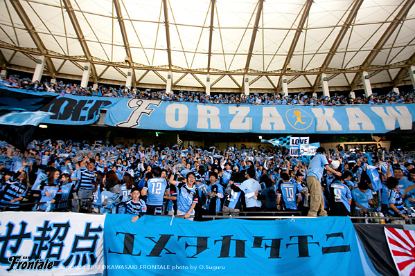 フロンターレのスターティングメンバーは、矢島と大久保の2トップ、中盤左サイドに大島、右に小林、ボランチは中村と山本のコンビ、最終ラインは伊藤-ジェシ-實藤-田中裕の並び、GK西部。立ち上がり1分、名古屋の攻撃。パスをつながれ押し込まれるが守備陣がしのぐ。4分、パスをつながれ中央突破を狙われるが、GK西部が飛び出しキャッチ。7分、フロンターレの攻撃。パスをつないで山本がスルーパス。小林が抜け出すが、シュートは惜しくもうまくミートせず。8分、伊藤が裏のスペースに出したボールに矢島が走り込むが、GKにキャッチされる9分、名古屋の攻撃。アーリークロスをケネディに落とされ。田中輝にシュートを打たれるがゴール上に外れる。10分、カウンターを狙われるが、ヤキモフスキーにはジェシが対応。12分、右サイド裏のスペースにボールを出されるが、小川にはジェシが対応。14分、フロンターレの攻撃。山本の縦パスを大島が落とし、大久保がミドルシュートを放つがゴール左に外れる。15分、名古屋の攻撃。田口の裏へのロングボールはGK西部が飛び出しキャッチ。16分、フロンターレの攻撃。パスをつないで山本が左サイドから抜け出しクロスを入れるが、矢島のヘッドはタイミングが合わず。17分、左コーナーキックの場面。中村のボールに矢島が走り込むが、ヘディングシュートは大きく外れる。さらに中村のロングスローのこぼれ球に反応した實藤がロングシュートを放つが枠には飛ばず。18分、名古屋の攻撃。自陣で闘莉王にボールを奪われ、左サイドからクロスを入れられるがGK西部がキャッチ。危ない場面だった。20分、左サイド裏にボールを出され、ヤキモフスキーにクロスを入れられるがGK西部が触りしのぐ。さらに攻勢をかけられ右サイド小川にアーリークロスを入れられるが、ヤキモフスキーには田中裕がついてカバー。22分、自陣からボールをつないで中村が縦パスを送り、矢島の粘りから大島がミドルシュートを放つが、これはゴール右に外れる。24分、ボールをつないで中村が右サイドへ展開。田中裕の速いクロスに矢島が合わせるが、惜しくもポストに当たって外れる。25分、中盤で大久保がボール奪い田中裕がクロスを入れるが、惜しくもDFにクリアされる。