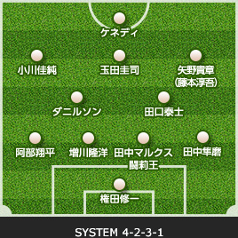 | 13 大久保 嘉人 | → | 7 中澤 聡太 | 90+3 | 70 | 19 矢野 貴章 | ← | 28 田口 泰士 |