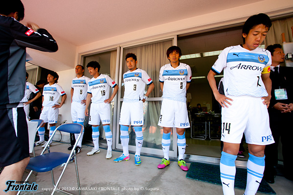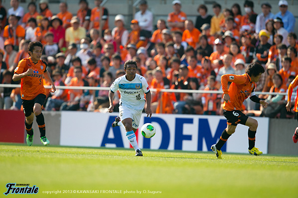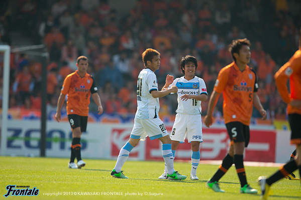 - ゴールシーンは、GKが動いたタイミングで出してくれた。あれはGKが動いていなかったら通ってないパス。GKとゴールの間を通ってきたので。嫌な展開だったが、すぐに取り返せたし。でもああやってずっとボールを持っていて、ああやって一発でやられるのは避けないといけない。あんなに相手に勢いに乗せたらいけない。最後は、連戦だったしみんな足が止まっていてある程度仕方ないところもあった。ボールを取った時にしっかりシュートで終わるか、しっかりボールを持つかできればよかった。引っかかって攻められるところもあった。もっとボールを大事に出来ればよかった。ケンゴさん(中村憲剛)なり、マサキ(山本真希)なりが前を向いてくれると自分たちも動きやすいし、そのへんはユウスケ(田中裕介)とか宏樹さん(伊藤宏樹)とかリョウタ(大島僚太)とか悠(小林悠)とかとの作りで今日はテンポよくボールは回っていたので、もっと崩せればよかったと思う。
