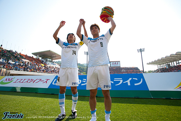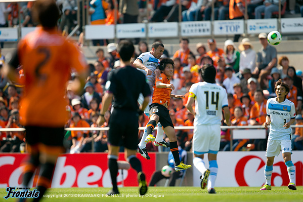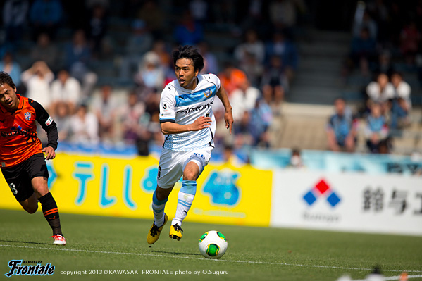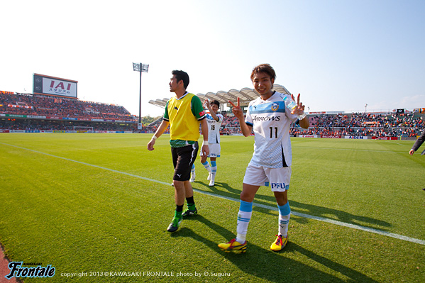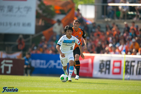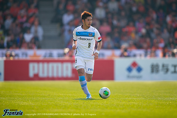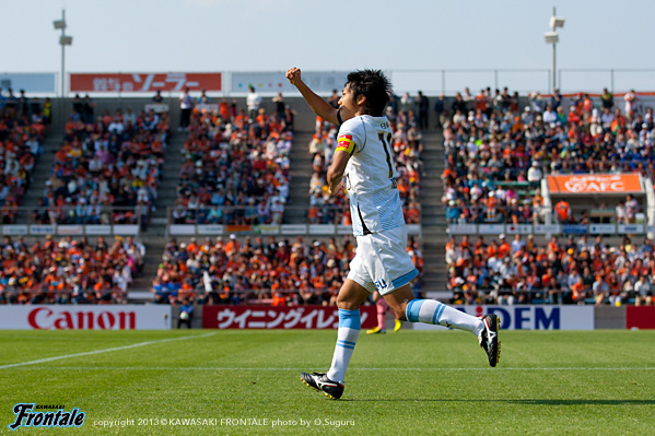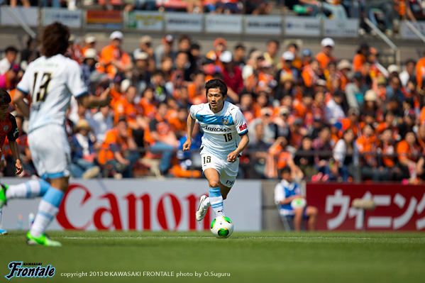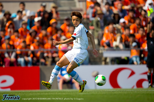 - この前勝てて、その勝ちを無駄にしないためにこの試合は大事だったので、そういう意味では勝ててよかったと思う。今日はナビスコのときよりも相手がプレッシャーをかけてこなかったので、ボールを動かしながら試合を進めることができた。ただ前半の押し込んだ時間帯での精度、フィニッシュのところは課題。自分たちが押し込んでいて一発で先にやられてしまったので、少し嫌な感じはあった。これまではズルズルいってしまい、終盤に追いつくのがやっとだったので。そういう意味でもすぐに取り返せたことが勝利につながったのかなと思う。2点目はおもいきり人数をかけて右サイドから崩しをかけることができた。中にもちゃんと人がいたし、ああいう形を増やしていきたい。もちろんバランスを取りながら、ではあるが。終盤は押し込まれてきつかったが、そんなにピンチになってはいなかったので、しっかり我慢してやっていれば問題はなかった。最後は足をつってしまった。動けていたわりにはミスは多かったので、そこは修正しないとダメ。自分としてはそこまで意識することはなかったが、フロンターレのサポーターがあれだけ声援を送ってくれてすごくありがたかった。個人的な応援団も100人くらいだったのかな。あれだけたくさんの方に来てもらえるのはありがたいし、地元ならではのことだと思うので感謝したいと思う。本当に、これは頑張らなきゃという気持ちになったし、勝ちゲームを見せることができて本当に良かった。連勝したことで上との差も縮まったと思うし、それは大きいと思う。まだ5月は試合があるので、そこで少しでも上位に食らいついていけるよう、連勝したいと思う。