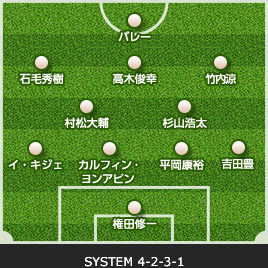 | GK/杉山 力裕 | 1 | 0 | SUB | 0 | 21 | GK/櫛引 政敏 | ||||