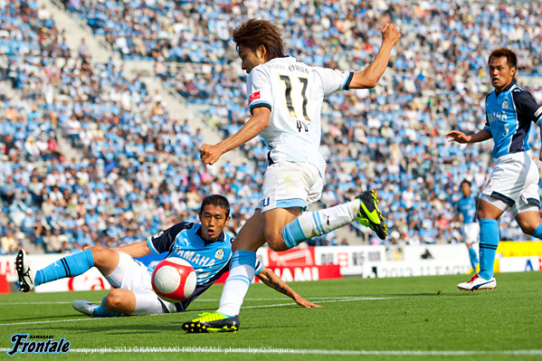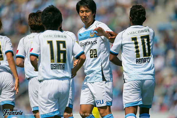 - 立ち上がりがよくて、うまく2点を取ることができた。1点目はヨシトさん(大久保)がいいボールをくれて、ユウさん(小林悠)が見えたがゴール前にたくさん人がいたので、ファーを狙ってボールを入れたらユウさんがうまく走り込んでくれていた。個人的には怪我をしてしまったことが残念。