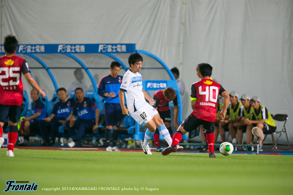 - 正直、今まで出た試合で一番プレッシャーがあった。連勝している中での先発だったので、その流れを止めてはいけないと思っていたし、ユウさん(小林悠)と森谷さん(森谷賢太郎)がいない中で急遽来たチャンスをものにしたいと思っていた。自分としては守備をやらないと試合には出られないと思っていたので、まずはそこでガツガツやることを考えていた。今日はとにかくチームのために走ろうと、前半で潰れてもいいぐらいの気持ちでプレーしていたので、何らかの形でチームの勝利に貢献できて良かった。ただ、後半の途中で両足をつったような感じになってしまった。2点目のアシストは、憲剛さん(中村憲剛)が見てくれていると思ったので、信じて走った。ゴール前で切り返すつもりだったが、まさか相手のDFが2枚ともタックルで滑ってくれるとは思わなかった。最初はレナトにしかコースがなかったが、嘉人さん(大久保嘉人)がうまくマークを外してくれた。アシストは出来たが、もっとチームに貢献できるものを探していかないといけないと思っている。試合に出ている選手は、もっとハードワークもしている。自分はまた一から練習を頑張って、チームのために戦える選手になれるように全力で頑張って、サポーターの皆さんの前でプレーができるようにしたいと思っている。