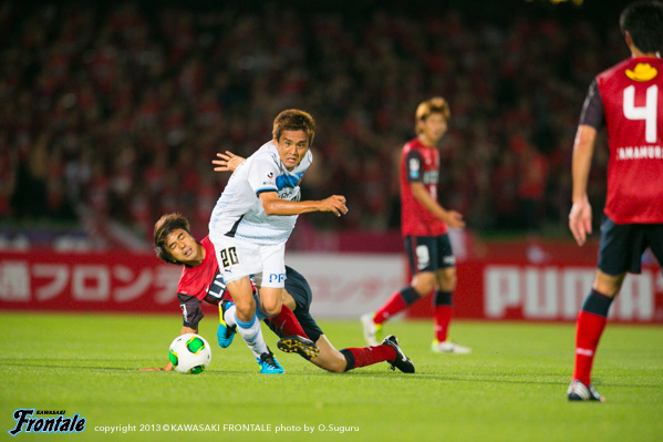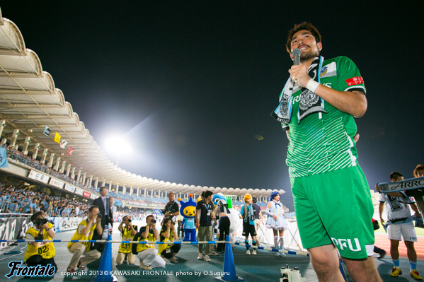 - 4対2という結果は、決定力、決定機の違いだと思うが、でも、常に自分たちがいい時間帯を作って自信を持って勝負で勝てていた結果だと思う。で、強気なライン設定からチャレンジアンドカバーもできていた。いま、フロンターレがつけている自信が出たというところに尽きると思う。向こうはナビスコで結果が出ていなかったし、そこに上手く付け込めたということもあると思う。今日は勝利できたが、もっと点をとれると思うし、失点も減らせると思う。そしたらもっとフロンターレは強くなれると思っている。自分としても、自分の置かれた立場もあるので、その中に自分もいられるようもっと努力して、このチームに携わっていたい。やっていくだけ。