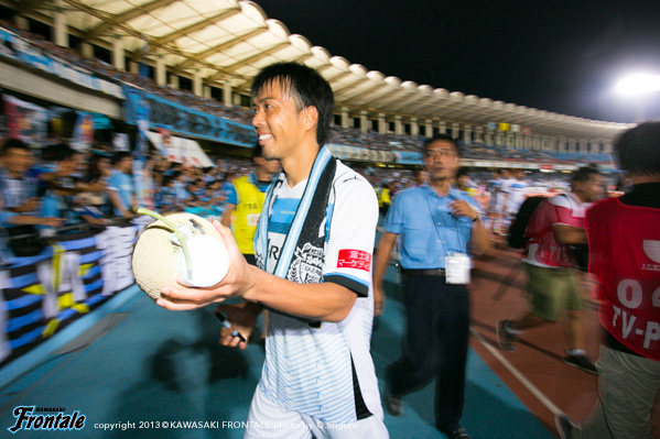- チームとしては今レナトが絶好調なのが大きい。レナトも周りの選手もお互いに生かし方がわかっている。ナビスコで勝って、リーグ戦再開初戦もいい形で入ることができていると思う。個人的には5月の最初以来の試合。まだ万全のコンディションとはいえないが、リードした状況だったのがよかった。夏場で暑かったこともそうだが、リードしている中での試合の進め方が大事だった。その中で途中から入った選手が何をするかというのは意識してプレーしていた。リスクを冒さずやること、守ることだけを考えるようにしていた。個人的にはジュニーニョとガチガチやり合いたかった。もっとガンガン仕掛けて来るかと思ったが、それほどでもなかった。もっと楽しみたかった気持ちはある。チーム全体としての流れがいいので、自分としては練習や試合をやりながらコンディションを上げてきたい。あと、ケンゴ(中村憲剛)の10年に一度か二度のフリーキックが見られてよかった。
