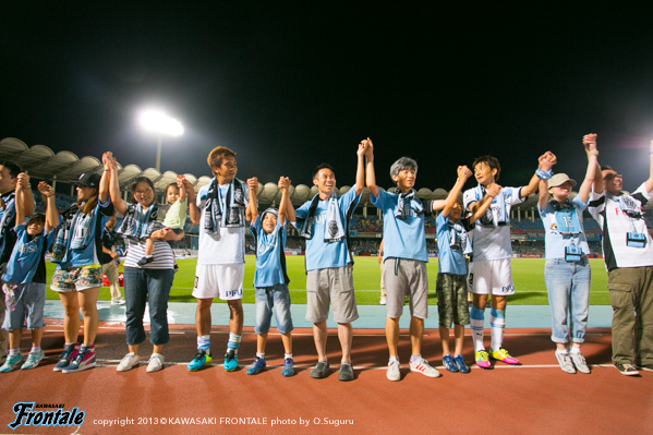 - 今日もありがとうございました。何回も等々力で試合したが、やっぱり負ける気がしない。実際に負けてない。スタンドでは産まれたばかりの子どもからおじいちゃんまで一喜一憂している光景がフロンターレの強さだな、温かさだなといつも思っている。これからもこういう温かさのあるチームでいたいし、自分もこのチームの力になりたいと思う。