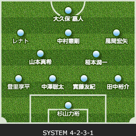 | 23 登里 享平 | → | 22 福森 晃斗 | 64 | 85 | 10 本山 雅志 | ← | 11 ダヴィ | |