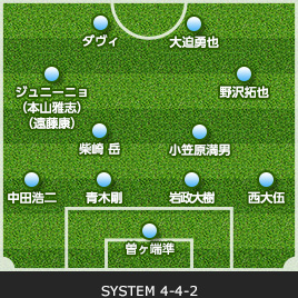 | 杉山 力裕 | 1 | 0 | 0 | 0 | GK | 0 | 0 | 0 | 21 | 曽ヶ端 準 |