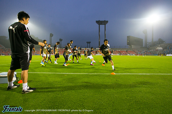 23分、フロンターレの攻撃。左サイドでのコンビネーションからレナトが抜け出し、こぼれ球を拾った中村がクロスを入れるが大久保には通らず。迎えた24分、中央から縦パスを入れられ、鈴木にミドルシュートを決められ同点に追いつかれる。(1-1) 25分、フロンターレの攻撃。相手陣内でボールを奪い返して攻勢をかけるがラストパスにつながらず。27分、大宮の攻撃。シンプルにゴール前にボールを運ばれるが伊藤が対応。28分、大宮の攻撃。菊池のロングシュートはゴール上に外れる。31分、最終ラインからロングフィードを入れられるが、GK西部が飛び出し体に当ててクリア。35分、フロンターレの攻撃。大宮の攻勢をしのいでカウンターをしかけるが、レナトはDFに止められる。37分、大宮の攻撃。右サイドから崩しをかけられチョにクロスを狙われるが、ボールはラインを割る。38分、フロンターレの攻撃。相手のバックパスに大久保が詰めてボールがこぼれるが、惜しくもシュートに持ち込めず。41分、大宮の攻撃。右サイドから崩しを狙われるが稲本が対応。42分、フロンターレの攻撃。中盤センターからのフリーキックの場面。レナトのボールからゴール前で混戦となるがGKにキャッチされる。43分、大宮の攻撃。直後にカウンターを狙われるが、サイドチェンジのボールは小林が戻り対応。44分、右サイドの今井に突破を狙われるが稲本が戻りスライディングで対応。さらに渡邉の右コーナーキックからゴール前で大混戦となるが、守備陣がぎりぎりのところでかき出す。危ない場面だった。アディショナルタイム2分。45+1分、フロンターレの攻撃。中盤でボールを奪ってカウンターを狙うが前線には届かず。45+2分、大宮の攻撃。直後に右サイドから攻勢をかけられるがシュートはゴール右に外れる。45+3分、フロンターレの攻撃。中村を起点にボールをつなぎ山本がミドルシュート。こぼれ球に大久保が詰めるが、右サイドからのシュートは惜しくもゴール左に外れる。立ち上がりに中村の折り返しを受けた小林が難しいシュートを決めて先制。しかしその後は大宮に攻勢をかけられ、一瞬のスキを突かれて失点。1-1で前半を折り返した。