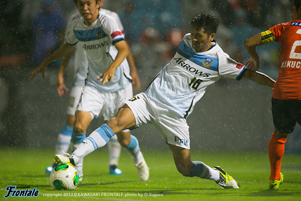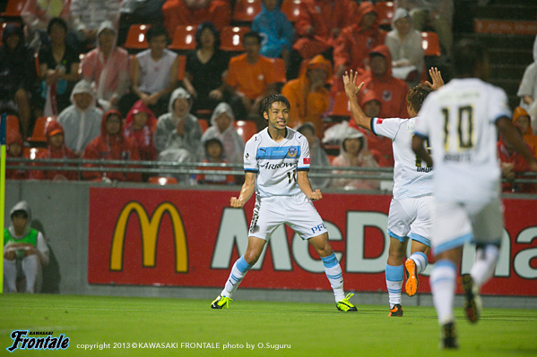 - みんなが気持ちを出してプレーできた。得点場面は、ケンゴさん(中村憲剛)からいいボールが出て来ると信じて走った。胸トラップでいい場所にボールを置くことができたので、しっかり決めることだけを意識した。振り切ったらいい場所に決まってくれた。ケンゴさんのボールがよかった。あまりコースがなかったが、ニアの上に入ってよかった。